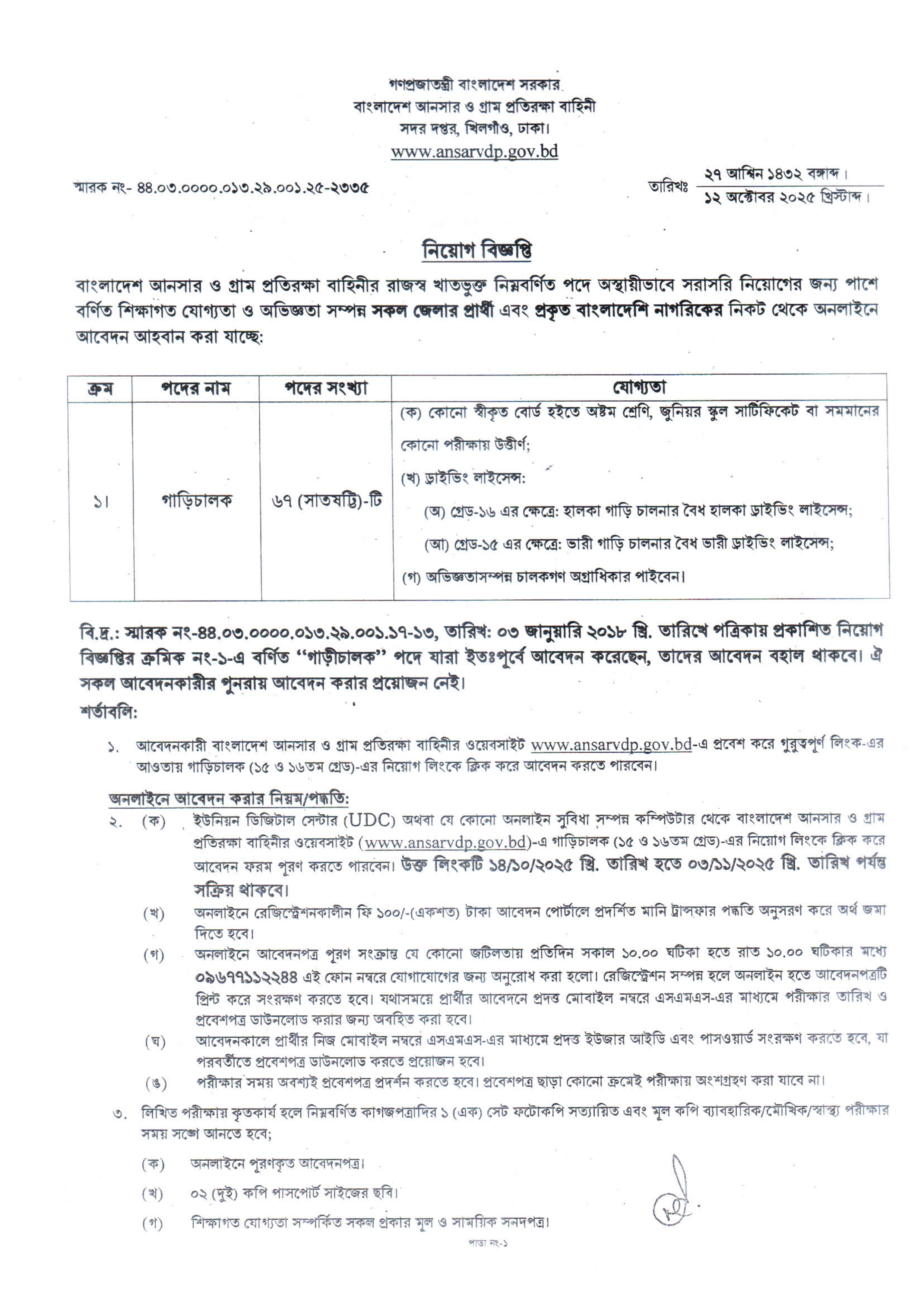 Online Ansar Recruitment: www.ansarvdp.gov.bd