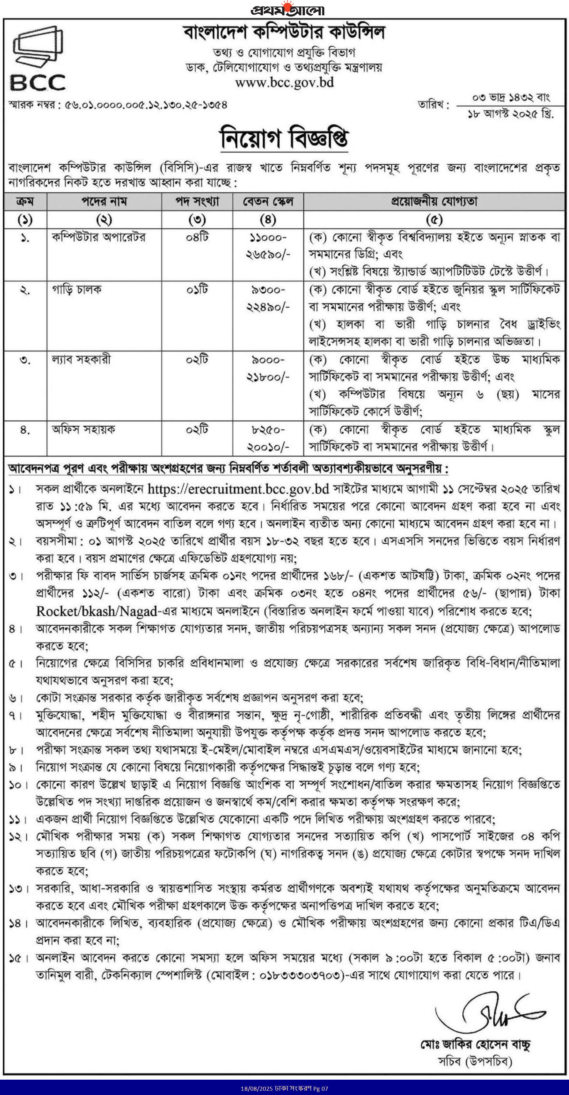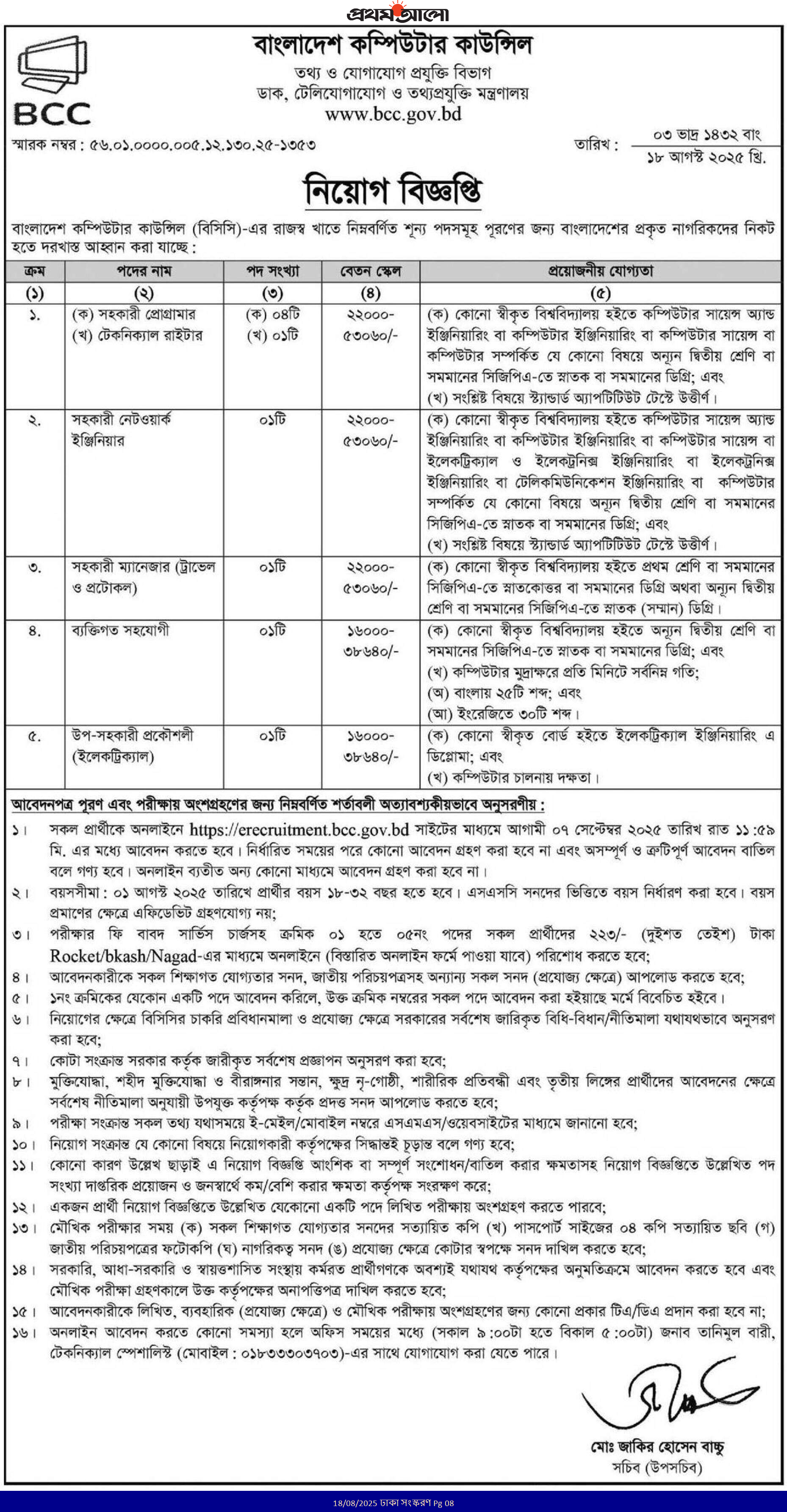 To get BCC job circular 2025 related to all the information, you can visit my website which is jobs.lekhaporabd.com. Bangladesh computer council looking for young, energetic, proactive, and honest people. if you think, you are perfect to apply for this job, you can submit your application.