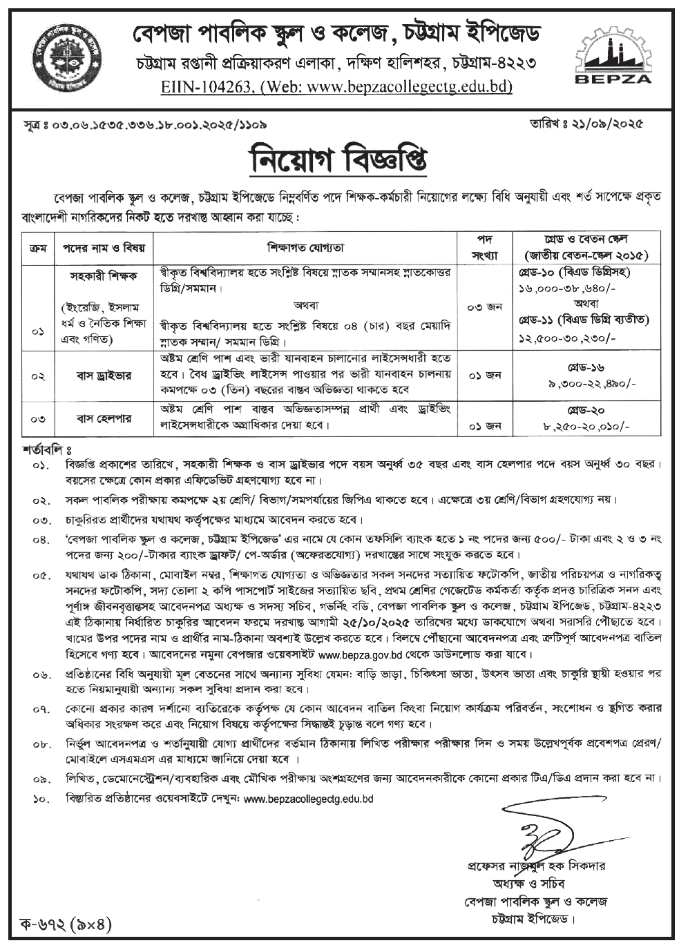 Bangladesh Export Processing Zone Authority BEPZA Job Circular 2025