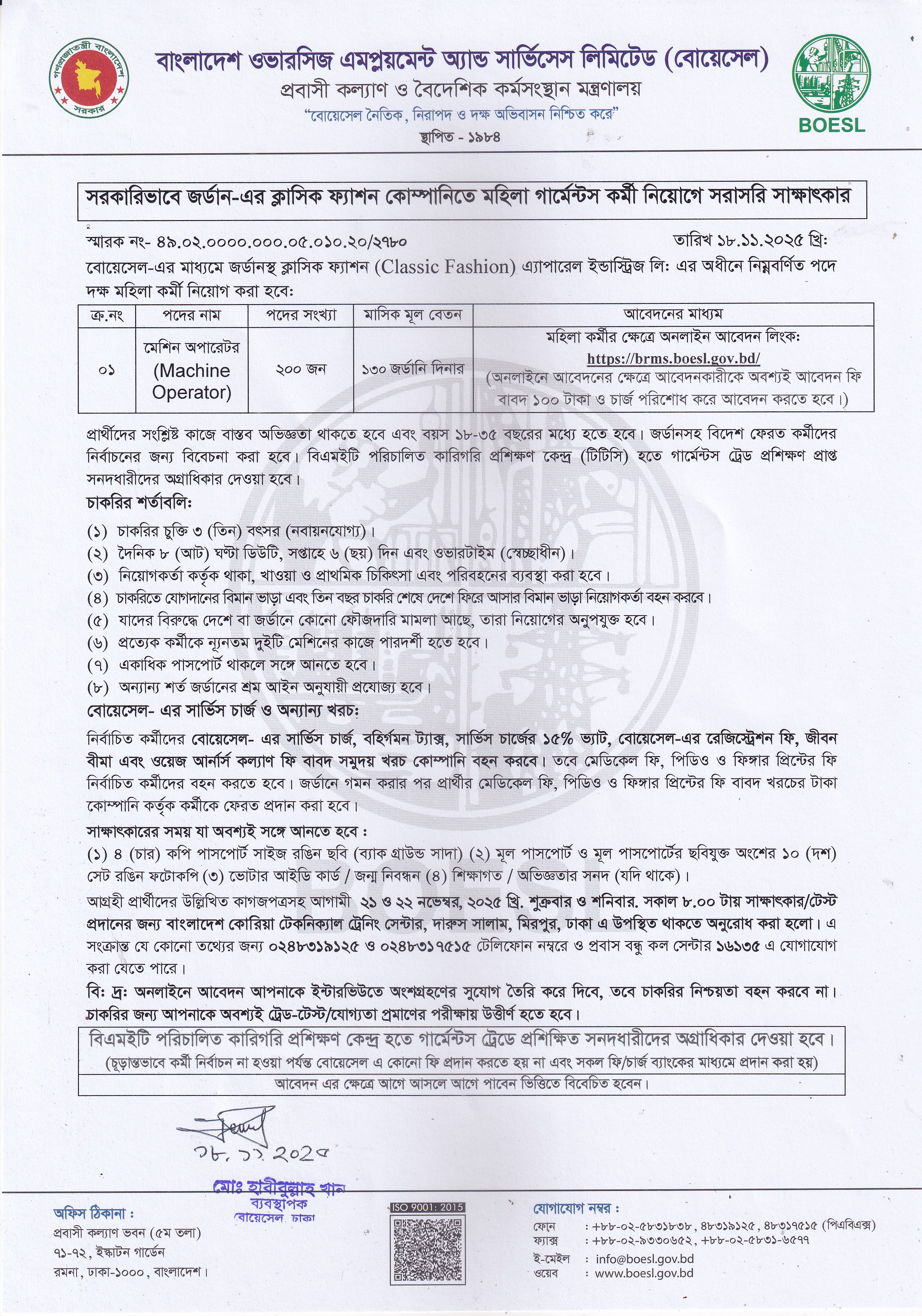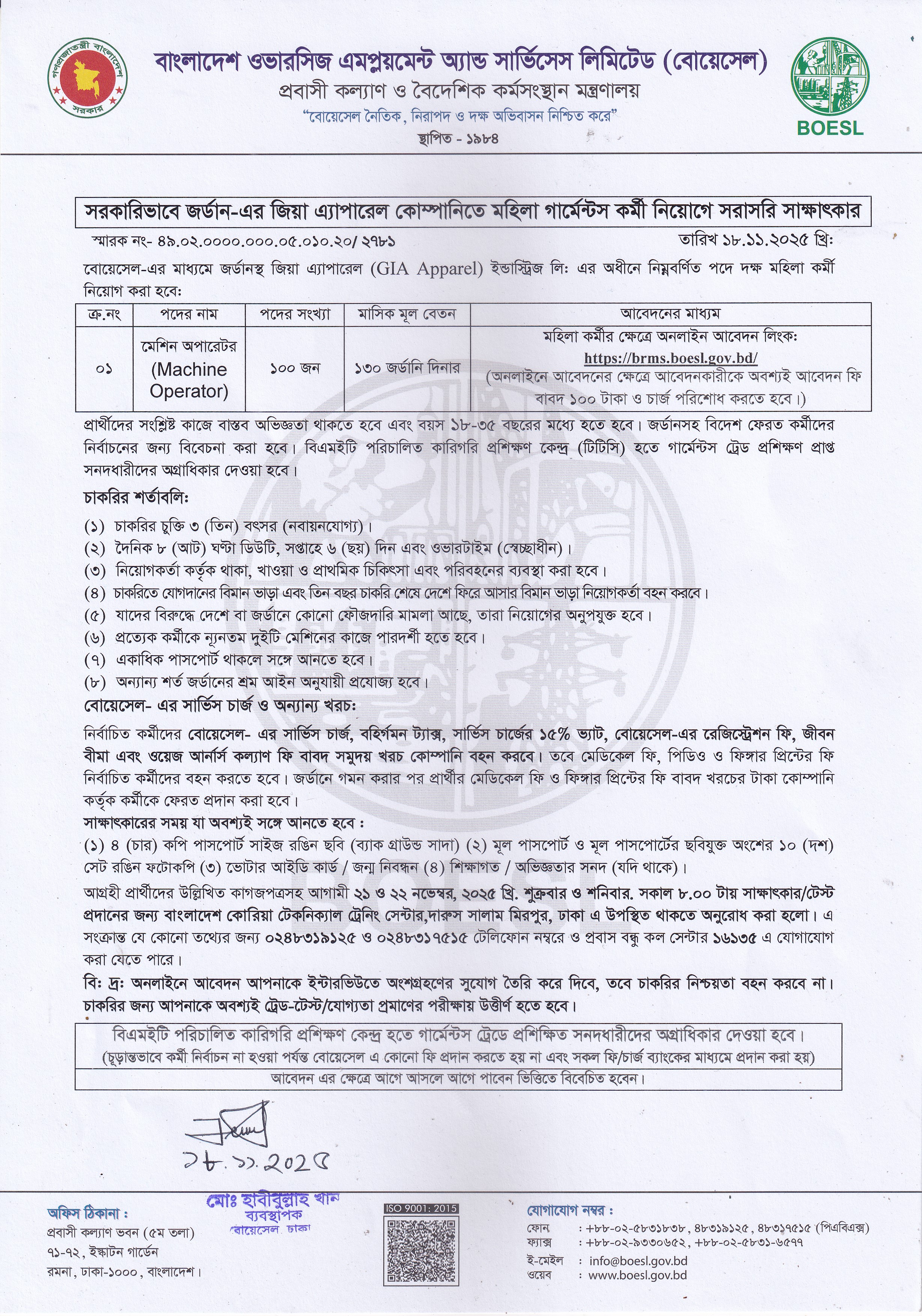 | Job Circular Title | Bangladesh Overseas Employment and Services Limited Job Circular 2025 |