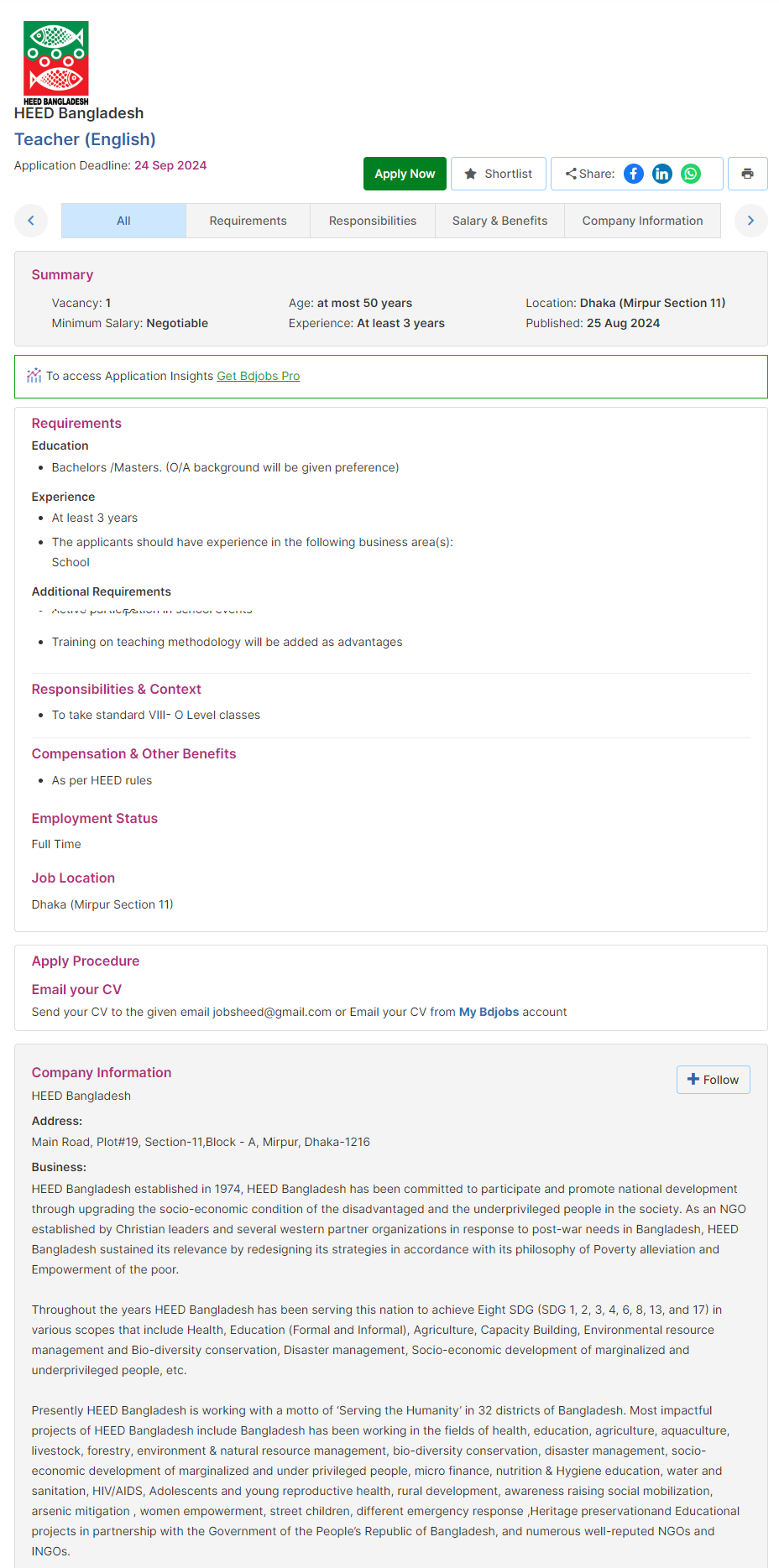 Check HEED Bangladesh All Recent job Circular Posted On BD jobs