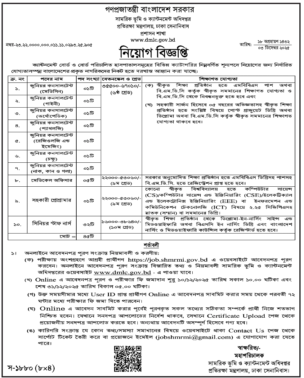 Department of Military Lands & Cantonments dmlc Job Circular 2025