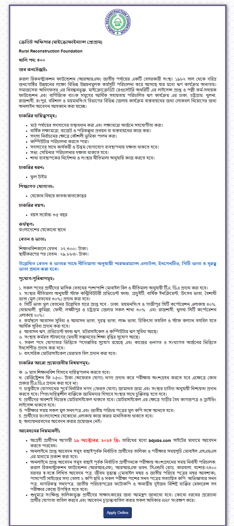 | Job Circular Title | Rural Reconstruction Foundation Job Circular 2024 |