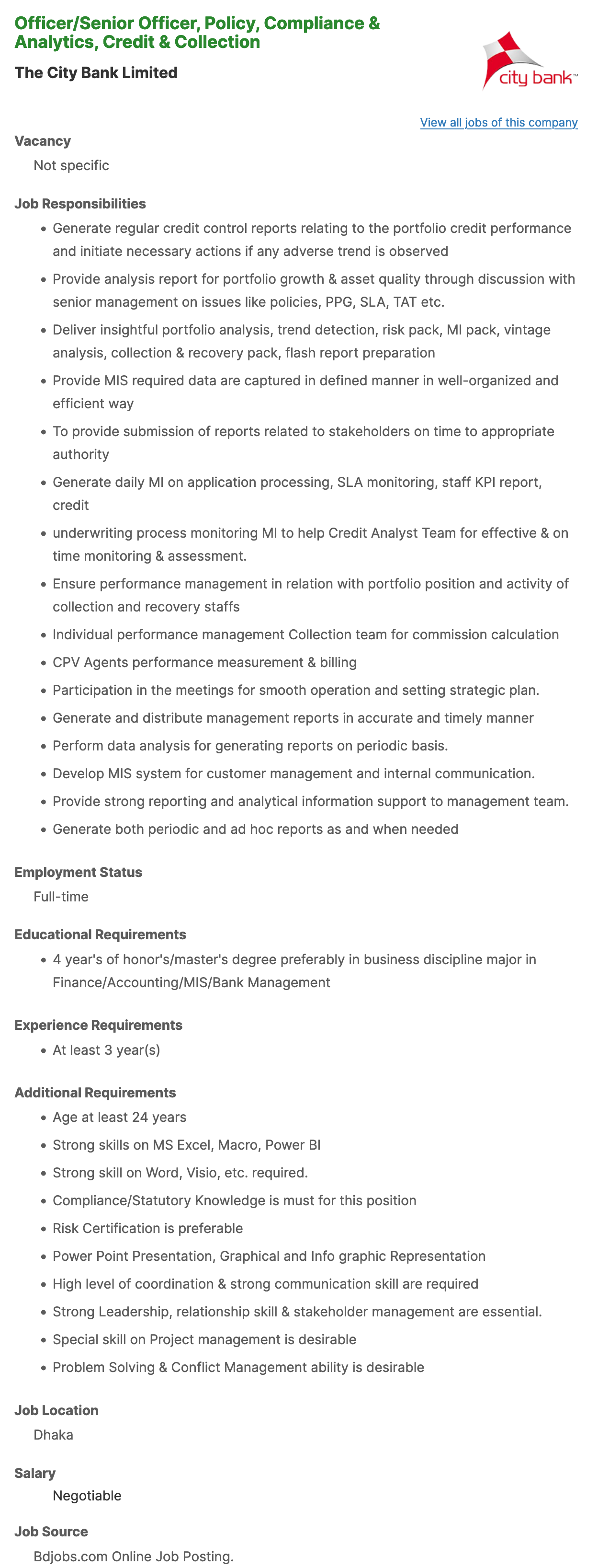 Check The City Bank Limited Recent All job Circular – বিজ্ঞপ্তি দেখতে স্ক্রল করুন।
