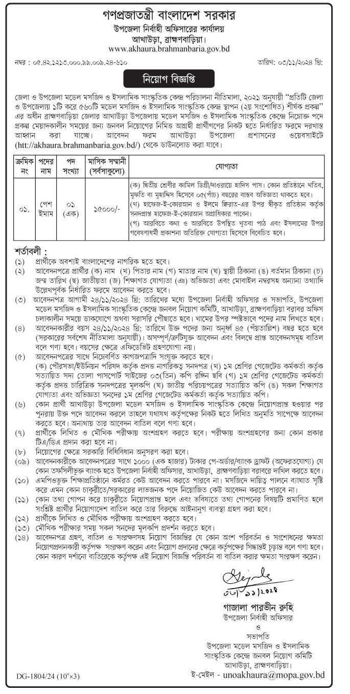 Netrokona, Modon Nirbahi Officer’s Office Job Circular 2024